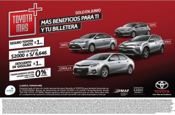 ERP. Toyota del Perú brinda grandes beneficios a sus clientes durante la campaña TOYOTAMÁS, que se realiza en toda su red de concesionarios a nivel nacional en los meses de junio y julio. Los usuarios podrán encontrar modelos con increíbles descuentos, además de promociones en financiamiento, seguro y gasolina.