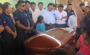 ERP/La Unión. A un solo grito de “justicia para Ricardo” los pobladores de Tamarindo Antiguo y Nuevo Tamarindo, trabajadores de la comuna unionense, autoridades funcionarios y familiares del sereno Ricardo Namuche Sullón, fallecido recientemente tras una lenta agonía, participaron de un sentido homenaje póstumo desarrollado en la sede de la Unidad de Seguridad Ciudadana de La Unión.