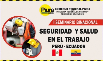 ERP. Con la finalidad de seguir desarrollando una cultura de prevención ante los accidentes de trabajo, la dirección de trabajo y promoción del Empleo ultima detalles para la realización del I Seminario Binacional de Seguridad y Salud en el Trabajo, con la participación del país vecino del Ecuador. La directora regional de trabajo Econ. Verónica Nelly Luy Delgado indicó que dicho evento se desarrollará el 28 de abril, fecha en que se recuerda el día internacional de la seguridad y salud en el trabajo y contará con expositores de gran nivel.