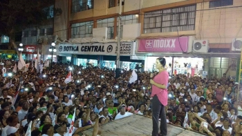 ERP. La candidata presidencial por el Frente Amplio Verónika Mendoza Frisch, congregó centenas de seguidores marcando una diferencia con relación a su anterior visita a la ciudad de Piura donde no contó con el mismo interés por su candidatura. En esta oportunidad hubo una multitud interesada en conocerla personalmente y en muchos casos respaldarla en la última semana de campaña electoral.
