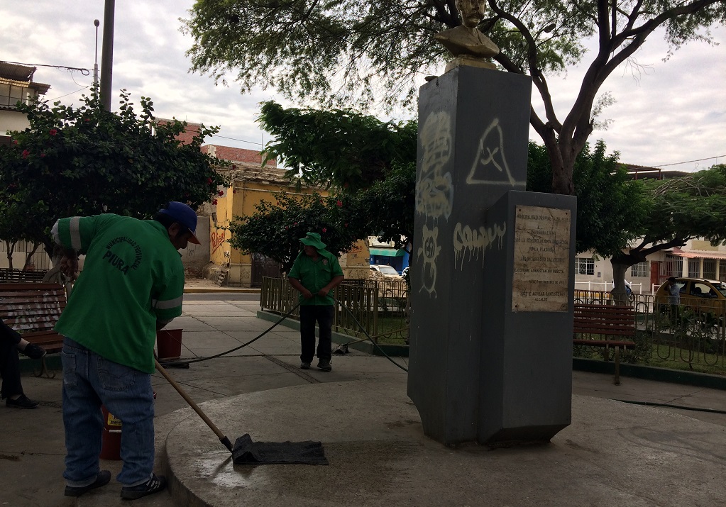ERP. El patrimonio cultural material quedó en mejores condiciones, gracias a la iniciativa realizada por promotores culturales en el marco del Día Internacional de Monumentos y Sitios, entre ellos la Municipalidad Provincial de Piura en coordinación con la Dirección Desconcentrada de Cultura (DDC) quienes realizaron este lunes trabajos de mantenimiento en diferentes plazas históricas de la ciudad.